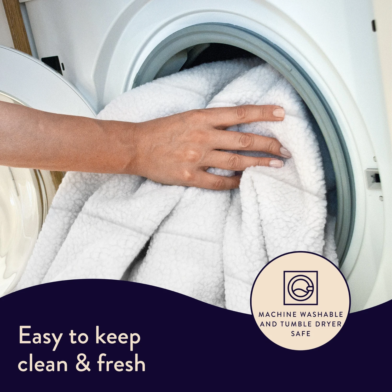 Create a sleep sanctuary with our sumptuous Scandi Sherpa mattress warmer. When the temperature drops, the teddy-bear fleeciness will have you toasty in minutes, but the clever reversible design ensures you'll stay cool in warmer months. It's quick to fit – thanks to elasticated corner straps – and even easier to care for. Double size with 2 controls. 5 minute fast heat up, 6 temperature settings and auto shut off timer. Machine washable and tumble dryer safe; simply detach the digital control. Energy saving, costing from only 1p to run.