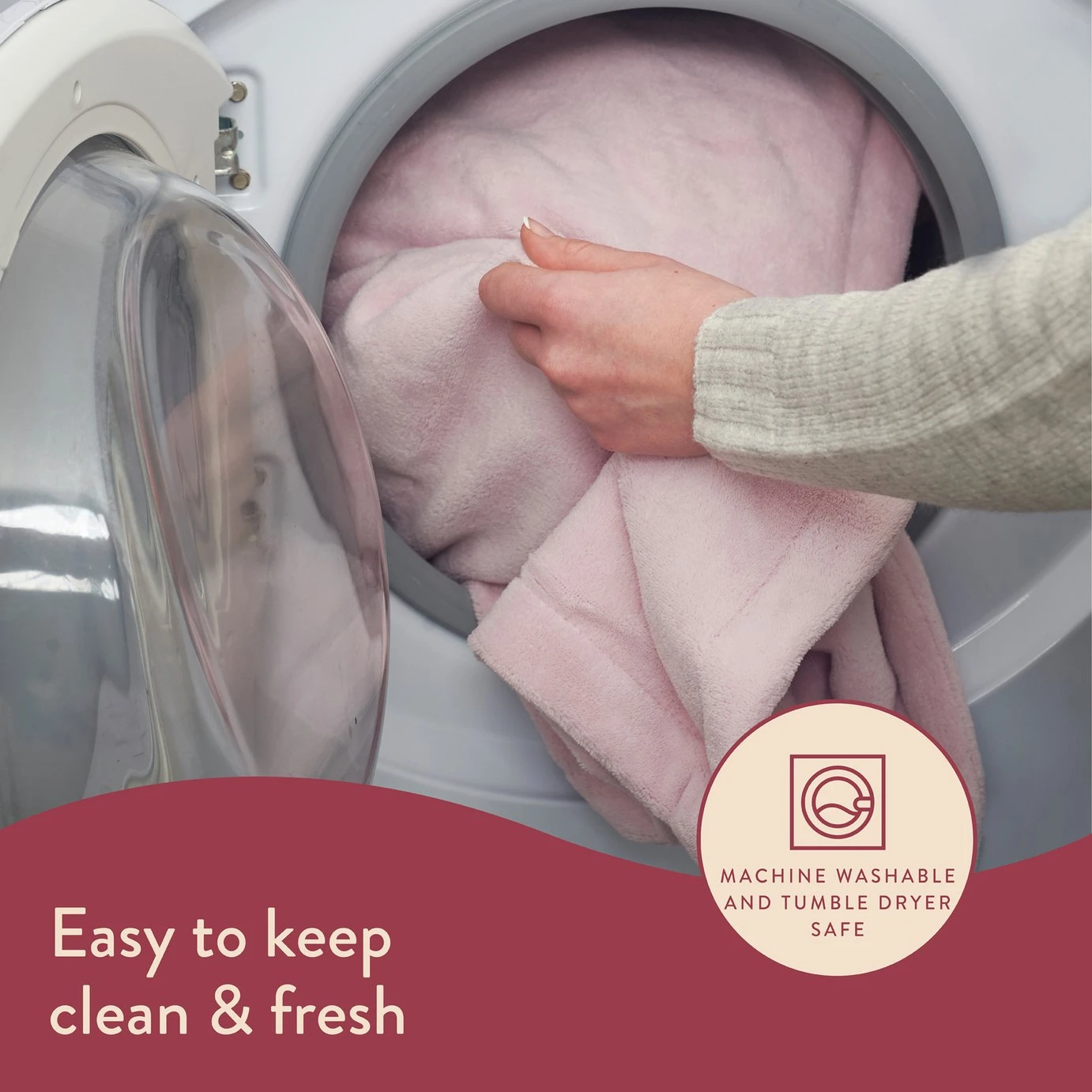 Cocoon yourself in cloud-like comfort with our velvety plush warming Pink throw. Super-sized and seriously soft, the strokable texture makes it the perfect solo or shared snuggle companion. And when you're not requiring the warmth and wellbeing benefits, it doubles up as a stylish living room accessory. 5 minute fast heat up, 6 temperature settings with auto shut off timer. Machine washable and tumble dryer safe; simply detach the digital control. Comes with reusable storage bag and 2 year guarantee. Energy saving, costing from only 1p to run.