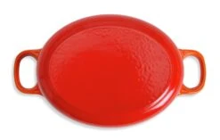 Feast your eyes on this vibrant orange cast iron casserole dish. Great for curries, stews and hearty hotpots. It spreads heat evenly and keeps your food warm until you're ready for seconds. Smooth, ergonomic handles make it easy to move around and work with. Pop it in the oven, on the table, or the hob. Gas, electric, ceramic, induction, it likes them all. A good looking all rounder.