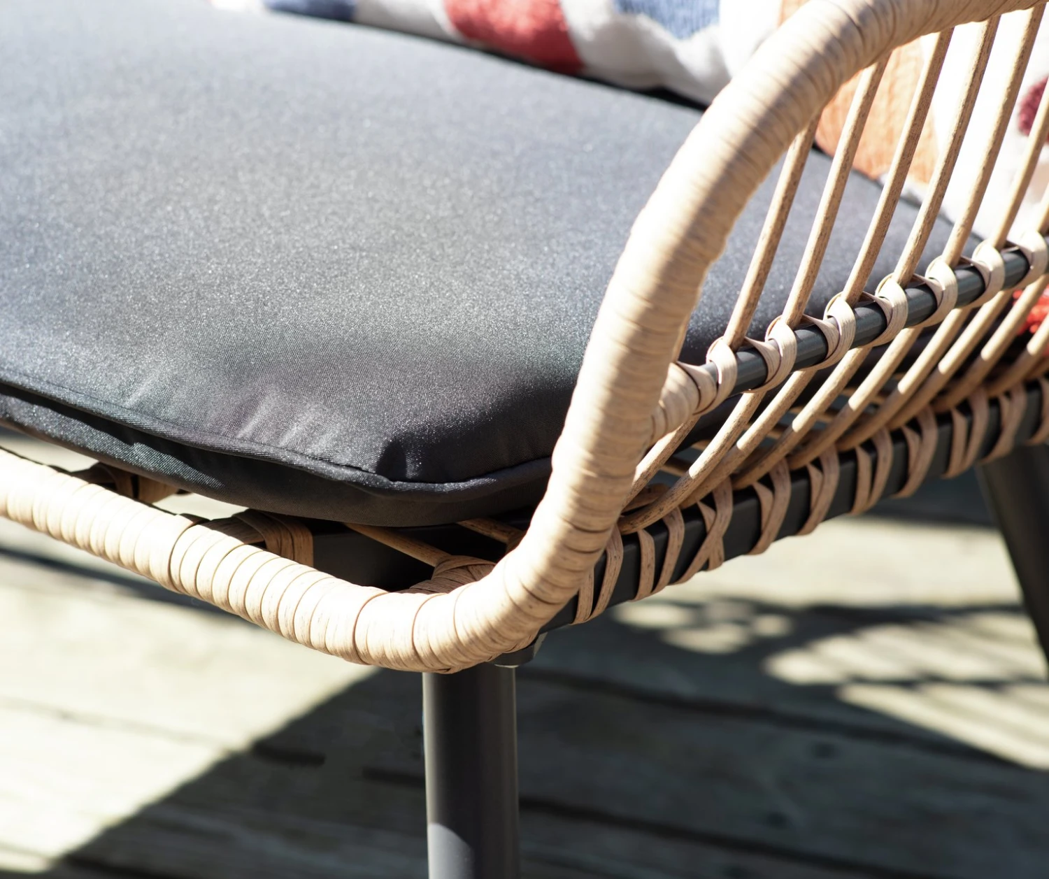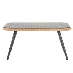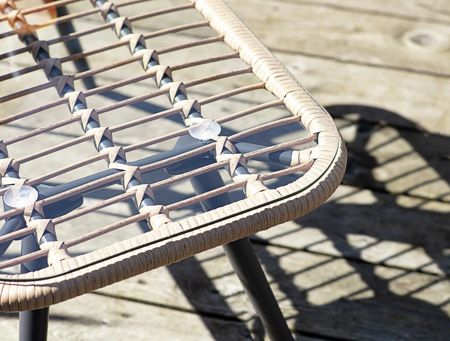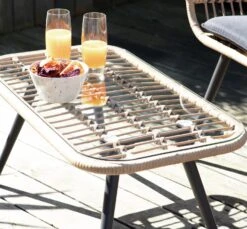 Create your own garden getaway with this stunning set. It will feel like you've been whisked to exotic climes! The set also comes with a small coffee table with a glass table top; the perfect place for keeping your summer beverages close to hand!