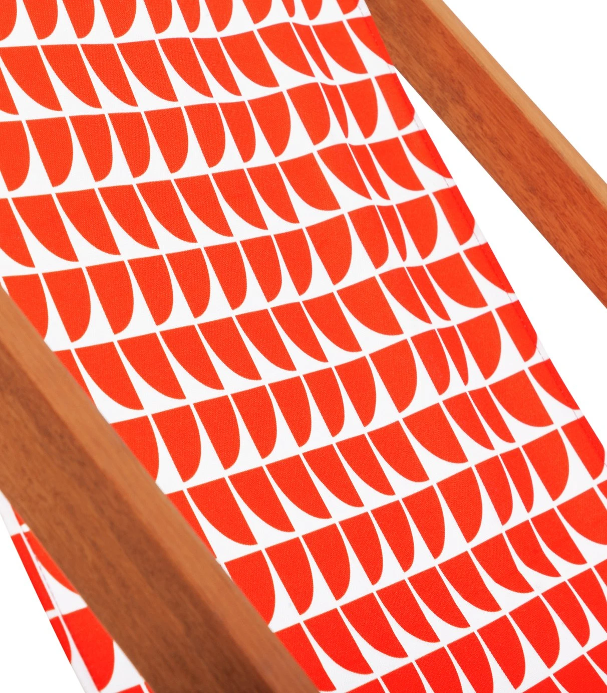 Grab your flip flops and towel. If you can't get to the beach, we bring the beach to you with this laid-back little number. It's 3 adjustable positions from upright to recline mean you can settle back and soak up the sun. Or sit up for an ice cream and a good read of your latest novel. An easy fold mechanism makes it easy to store or transport. Easy-to-store and space-saving. The natural solid wood frame is beautiful and weather resistant and complemented by our zesty Geo Orange fabric.