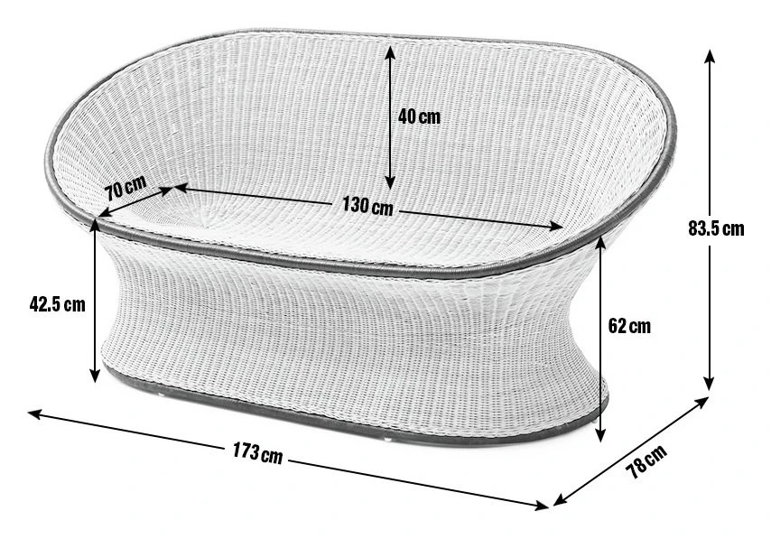 - Width of seating area between arms: 130cm.