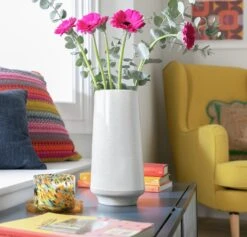 Turn our tall, slender vase into an eye-catching accent piece. Build on the sense of height and pair with tall blooms or stems. In a reactive speckled glaze with plinth base, this ceramic vase is designed to blend seamlessly into any interior.