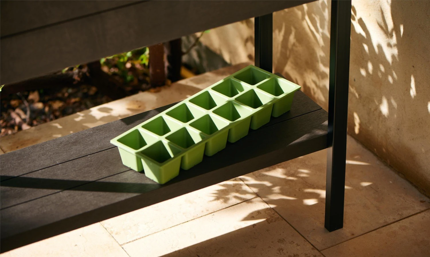 With the Urban Bloomer, you won't need lots of space to have a vegetable garden. This elevated planter features a full smart watering system solution, including an embedded fabric to maintain soil humidity, and a sprouting tray is included to start seedlings. There is a shelf for storing your gardening supplies and the ergonomic design eliminates the need to bend over when tending to your plants. Ideal for growing vegetables and herbs, this planter is suitable for patios, gardens and balconies.