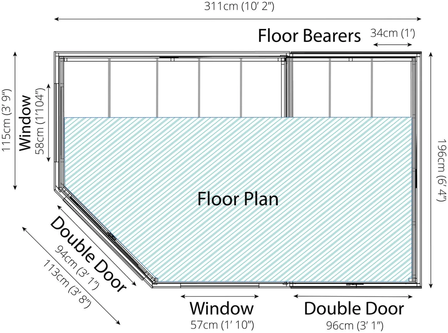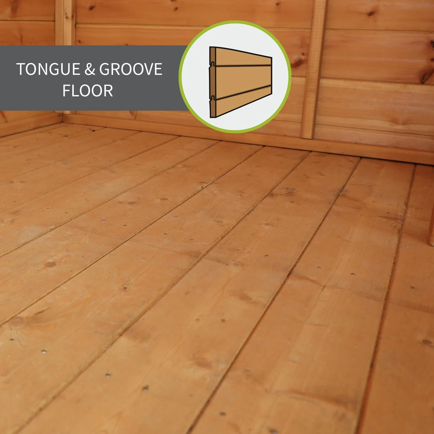Heavy-duty tongue and groove boards are used to construct the floor of this summerhouse. Using an interlocking method, the boards lock together to create a premium, strong and hard-wearing finish which is ideal for frequently used buildings and heavier items.