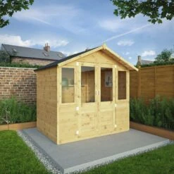 The 7 x 5 Traditional Summerhouse is a compact and elegant summerhouse that is perfect for those looking to enjoy their garden from a shaded spot. Featuring two fixed styrene glazed windows and half glazed double doors, the summerhouse is light and airy, providing a welcoming feel. The walls of this summerhouse are constructed using premium horizontal interlocking tongue and groove boards with a shiplap profile. The shiplap profile includes a protective and aesthetically pleasing lip to create a strong, weatherproof panel.