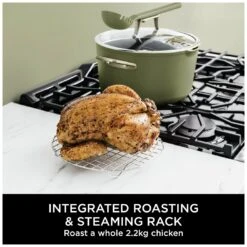 Everything you need to make it possible. Discover 8 ways to cook in one pot – Steam, Simmer, Roast, Braise, Bake, Saute, Sear and Boil your way to hearty roasts, one-pot meals, home-baked treats and more. Replacing 5 pieces of cookware, use it as a stock pot, saucepan, roasting pan, baking dish and steamer. The space-saving design features an integrated roasting/steaming rack and a multifunctional utensil stored in the heat-tempered glass lid. Go from hob to oven to table: it's oven safe up to 260C and suitable for all hob types.