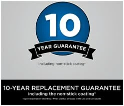 This 5-piece stacking pan set includes 16cm, 18cm and 20cm saucepans with heat tempered glass lids, plus 20cm and 24cm frying pans. Ninja offers a 10 Year Replacement Guarantee, including the non-stick coating. Upon registration with Ninja. When used as directed in the use and care guide.