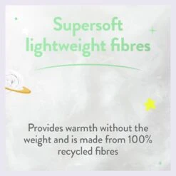 The Slumberdown Little Slumbers Anti Bacterial Cotton duvet has been designed for children. It is carefully formulated with a permanent, antibacterial, antimicrobial, non-harmful odour control treatment, BI-OME® which protects textiles from the build-up of dustmites and odour causing bacteria. The reduced fill ensures your little one won't overheat at night. Independently tested by experts, so your little ones can enjoy a comfier, fresher and healthier sleep space. What's more this is Easy Care so can be machine washed and tumble dried.