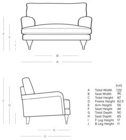 - Width of seating area between arms: 90cm.