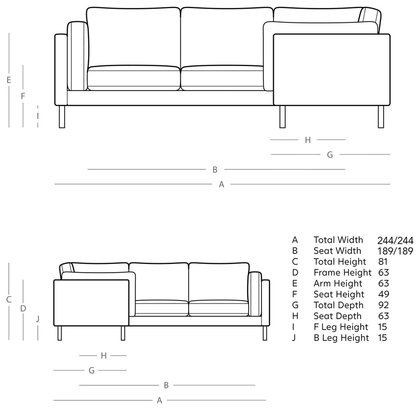 - Depth of seat: 63cm.