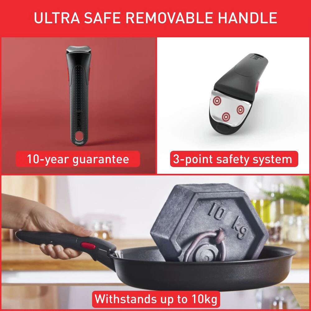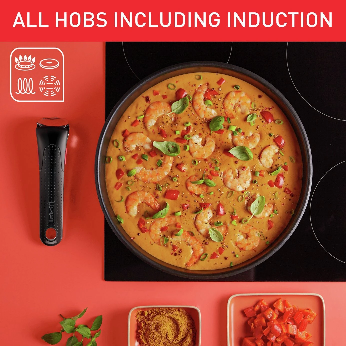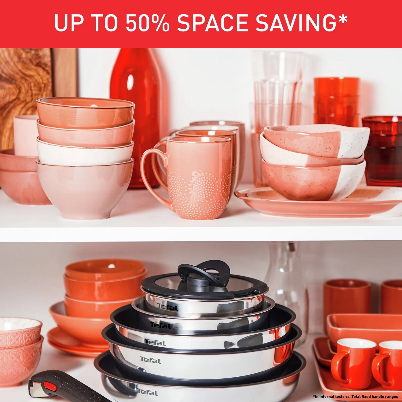Simplify your cooking with Ingenio Emotion, premium stainless-steel cookware with iconic removable handle. Thanks to the handle, Ingenio stacks to save space, and goes from hob to oven to table and even into the fridge. Talk about versatile! With a mirror polished exterior and Titanium non-stick interior on frying pans, it's durable by design. It also has Thermo-Signal technology to show when the pan is at the perfect temp for a good sear, and extra-thick high-impact bases for fast and even heat diffusion on all hobs, including induction.