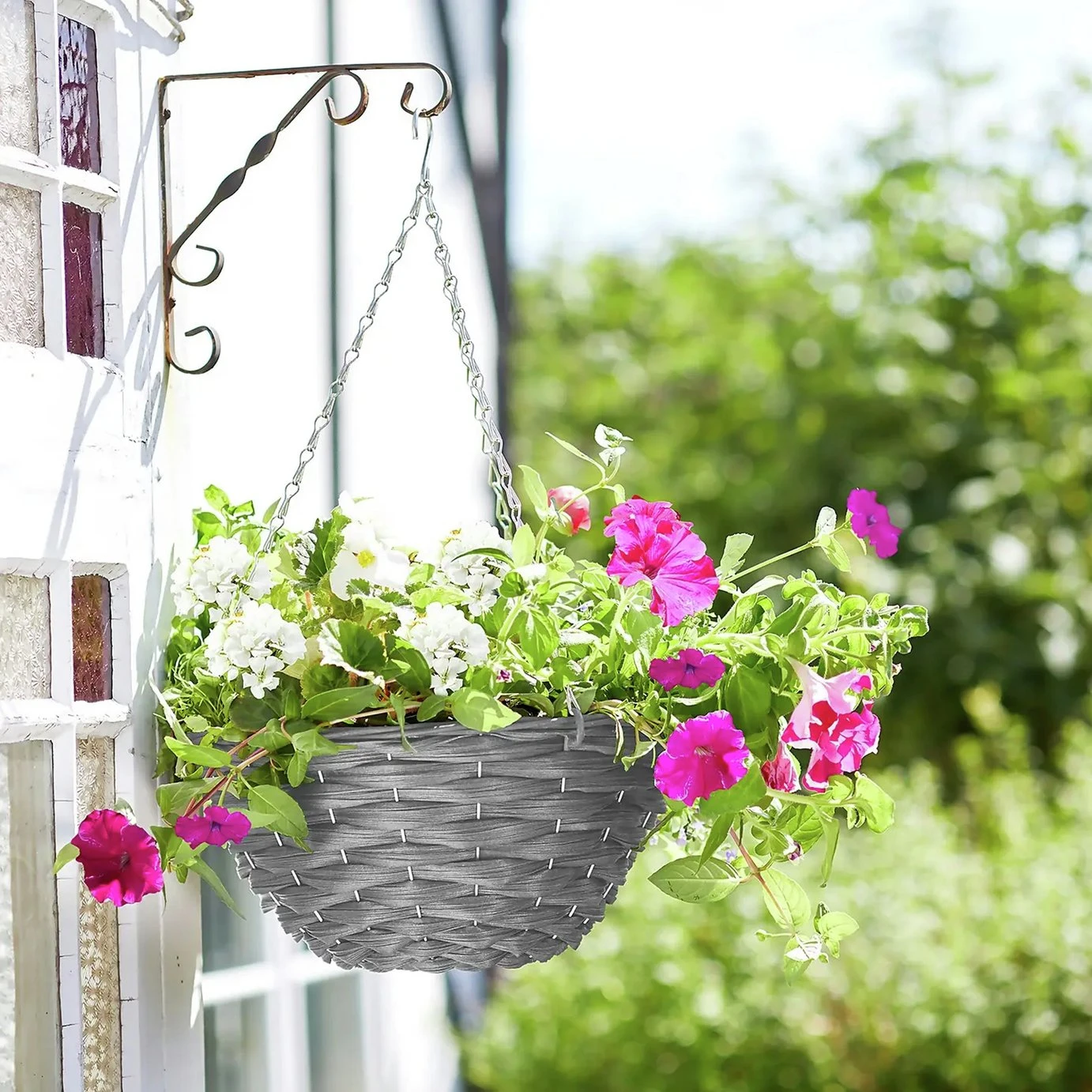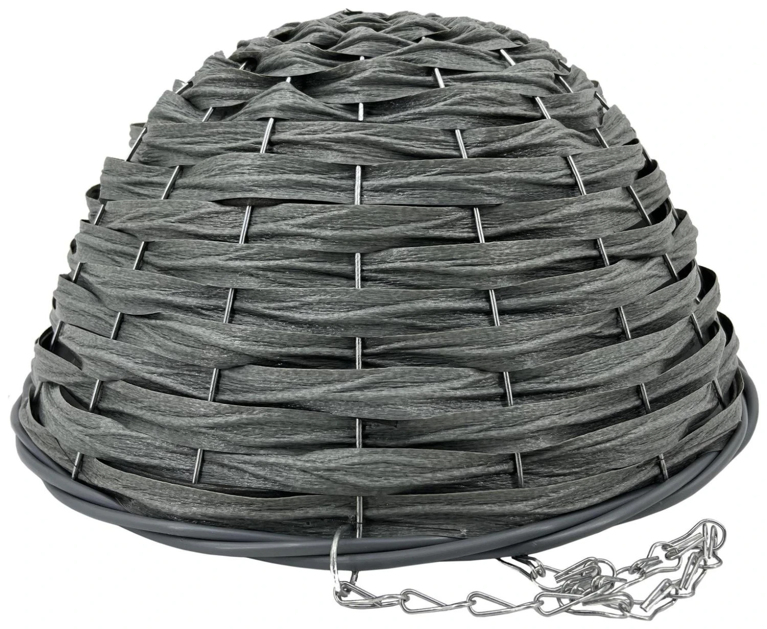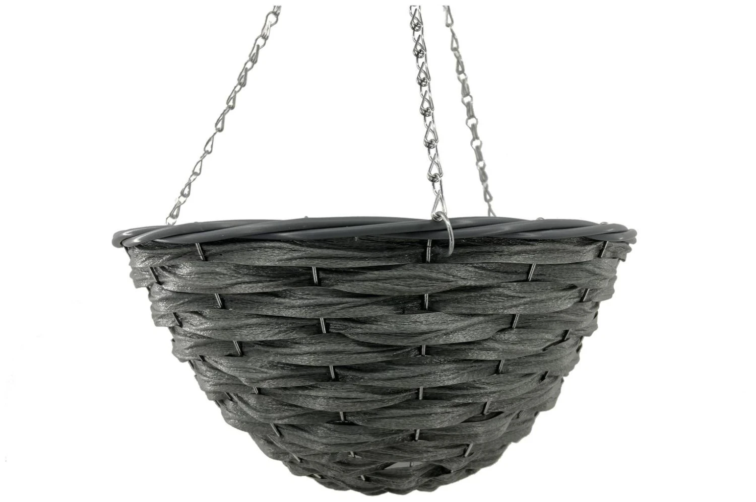 Hang all types of flowers and plants in this contemporary slate hanging basket. Made from durable faux rattan, quality will not deteriorate like natural rattan so is suitable for your outdoor space year-round. The sturdy chain and hook can easily attach to any pole, beam or hook, to create a beautiful display.